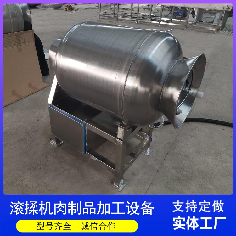 随着健康饮食兴起,低脂高蛋白的鸡胸肉需求大增,但其易柴的口感是痛点。真空滚揉机通过注入适量腌制液(含磷酸盐、淀粉等),在真空状态下强制肉纤维吸收水分,显著提高持水力。滚揉的机械作用使肌纤维适度断裂,进一步改善嫩度。相比传统浸泡,滚揉机能在30分钟内让鸡胸肉增重10%-15%,且烹饪后不失水,口感鲜嫩不干涩。此外,真空加工减少了氧化,保持了肉色洁白。这种工艺使得减脂鸡胸肉既保留了营养,又拥有了诱人的口感,满足了现代消费者对健康与美味的双重追求。