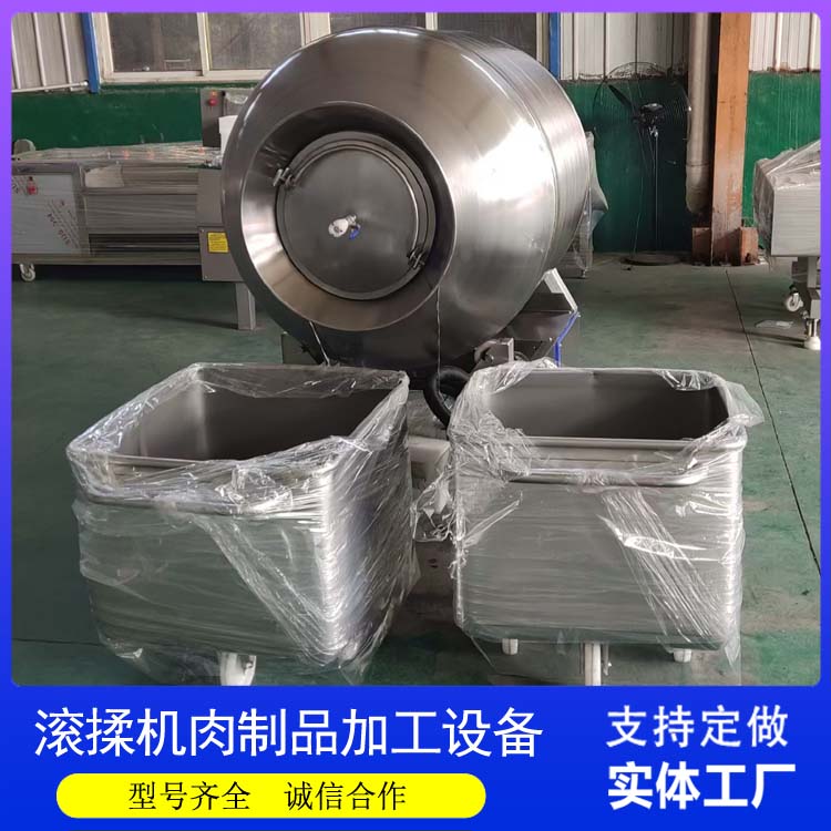 低温火腿强调原汁原味和细腻口感。真空滚揉机是其主要加工设备,通过长时间的低速滚揉和真空环境,充分提取瘦肉中的盐溶性蛋白,形成稳定的乳化体系,确保火腿切片后不散、有弹性。真空状态防止了脂肪氧化和气泡产生,使火腿切面光滑细腻,色泽粉红诱人。相比传统腌制,滚揉机不仅缩短了熟化时间,还显著提高了产品的保水性和出品率。控制的滚揉参数,确保了每一批次火腿质地均一,口感鲜嫩多汁,诠释了肉制品的工艺标准。