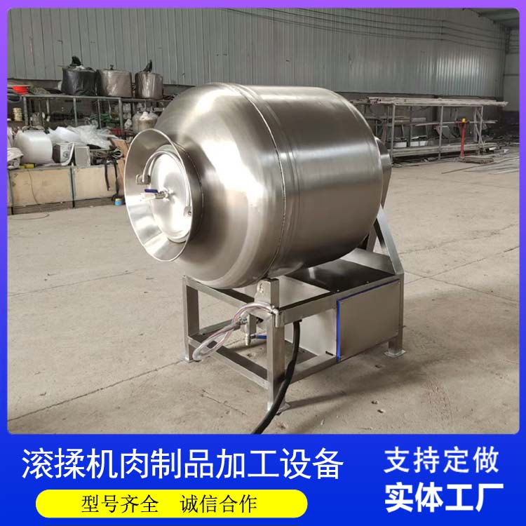 烤鸭的美味源于皮脆肉嫩和的腌料风味。真空滚揉机在鸭胚处理中,能将含有香料和上色剂的腌液快速压入鸭肉内部,特别是胸腿等厚实部位,解决了传统灌腌不均匀的问题。真空环境有助于排出皮下空气,使鸭皮在烤制时更易鼓起,达到“酥而不烂”的效果。滚揉的物理作用还软化了鸭肉纤维,减少了腥味,提升了嫩度。相比传统风干腌制,滚揉工艺大幅缩短了准备时间,且成品色泽枣红均匀,肉质鲜美多汁,为烤鸭的标准化生产提供了有力支持。